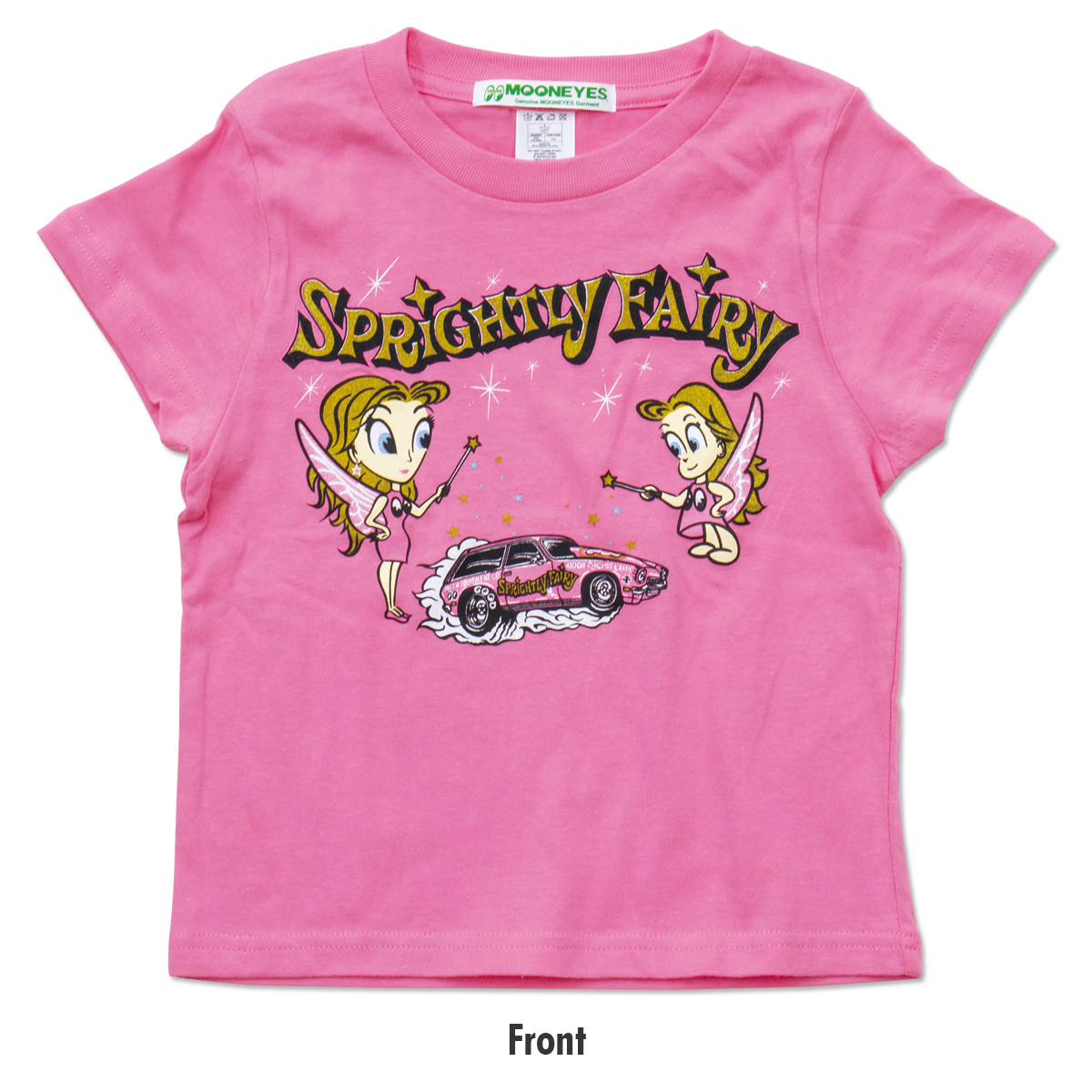 MOONEYES Official YouTube Channel [MOONEYES in ACTION] で大活躍中の MOONEYES Imagineer emi が Drag Race で乗りこなす、1972 Chevrolet Vega Wagon [SPRIGHTLY FAIRY] をフィーチャーしたデザインの小さなインファントにぴったりの Tシャツです。