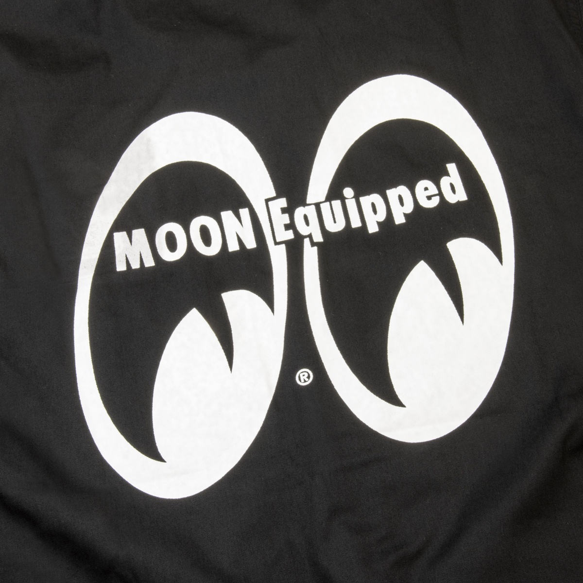 フロント胸元にはワンポイントで MOON Equipped スクエアパッチを配置。その下にはペン差し付きのフラップポケットを備え、シンプルながら機能的なデザインに。