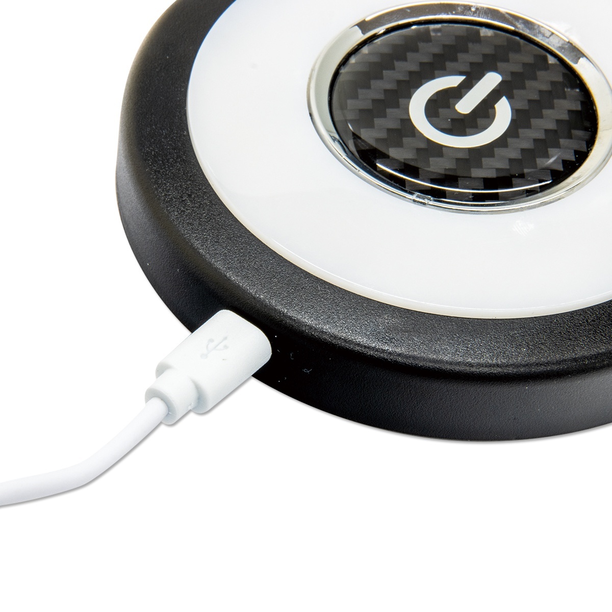 スチールダッシュやトランクなど、暗くて中が見えにくい場所にも簡単に装着でき、ちょっとした懐中電灯としても活躍します。中央のボタンを押すだけで簡単に ON/OFF ができ、USB 充電式で繰り返し使用可能。