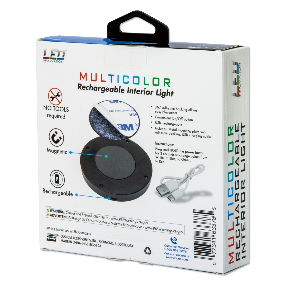 車内のほぼどこにでも取り付け可能な、4色に点灯するマグネティック インテリア ライトです。
