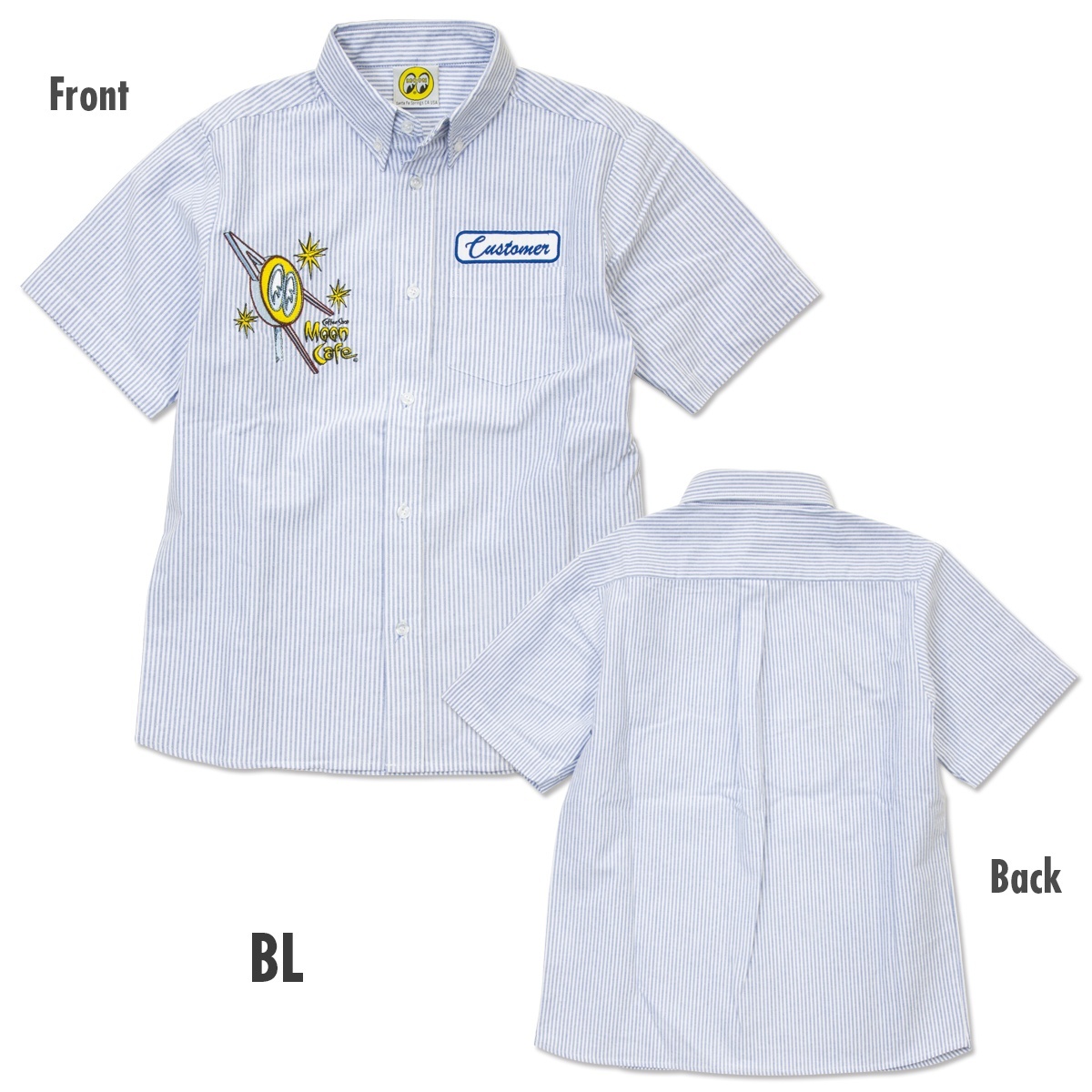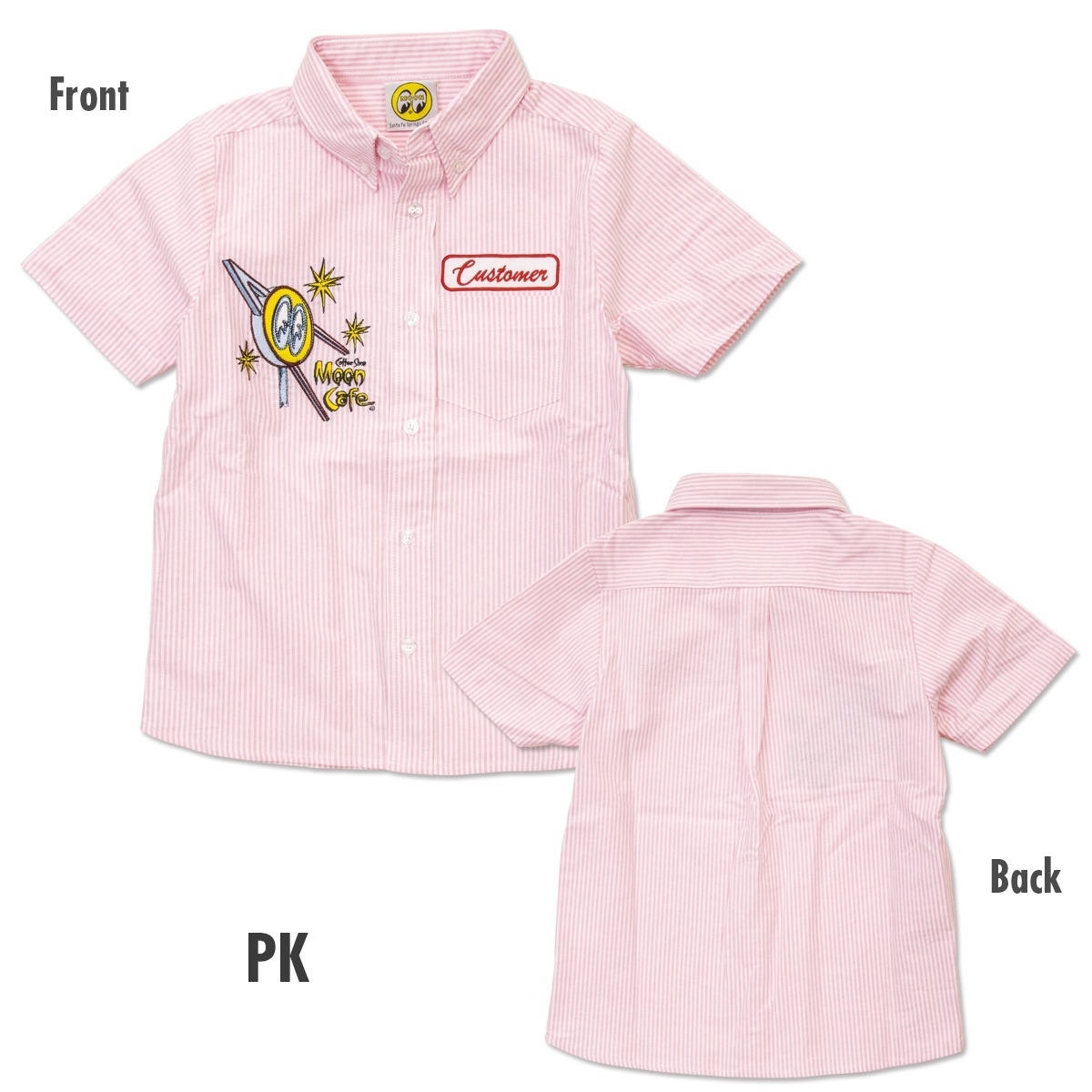 MOON Cafe のシグネチャーであるネオンデザインを刺繍で施したボタンダウンシャツ for Kids!
