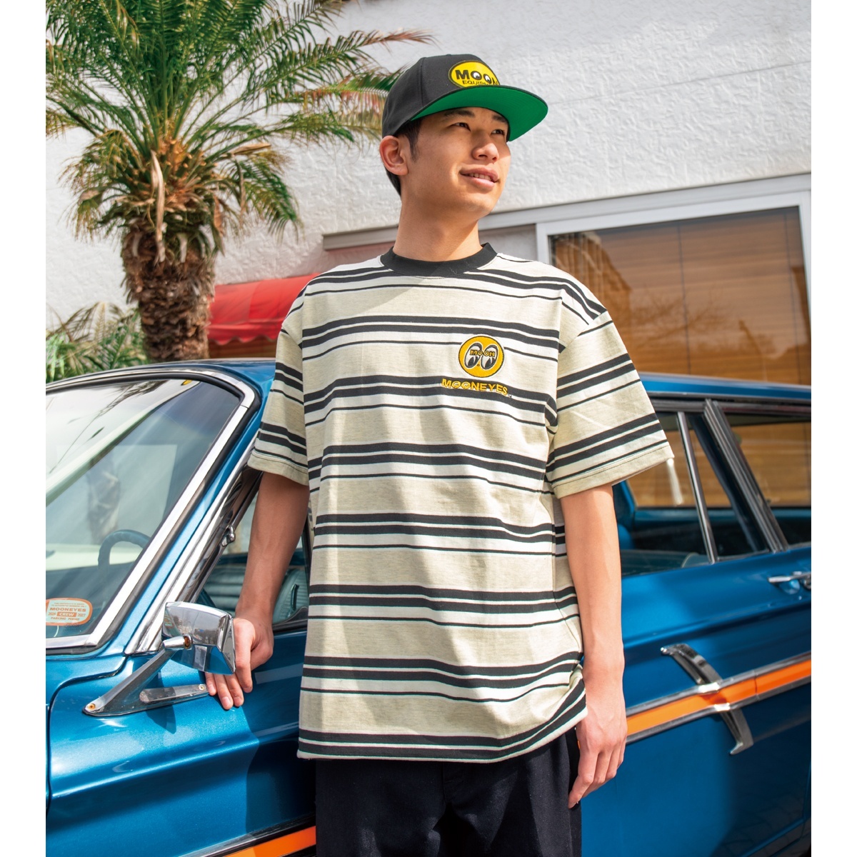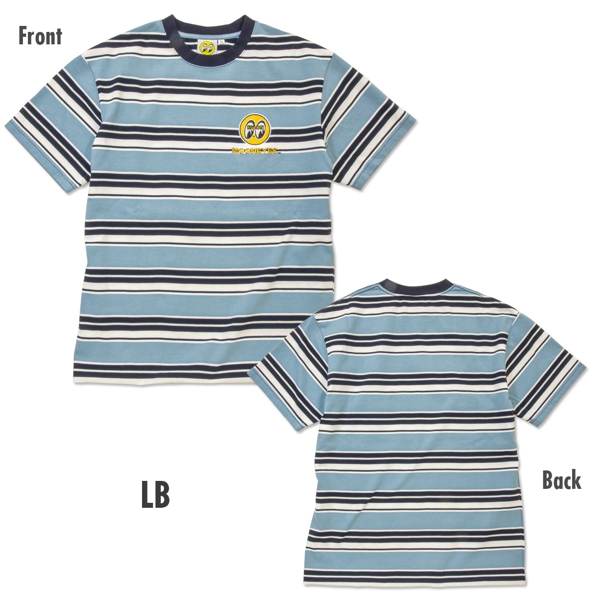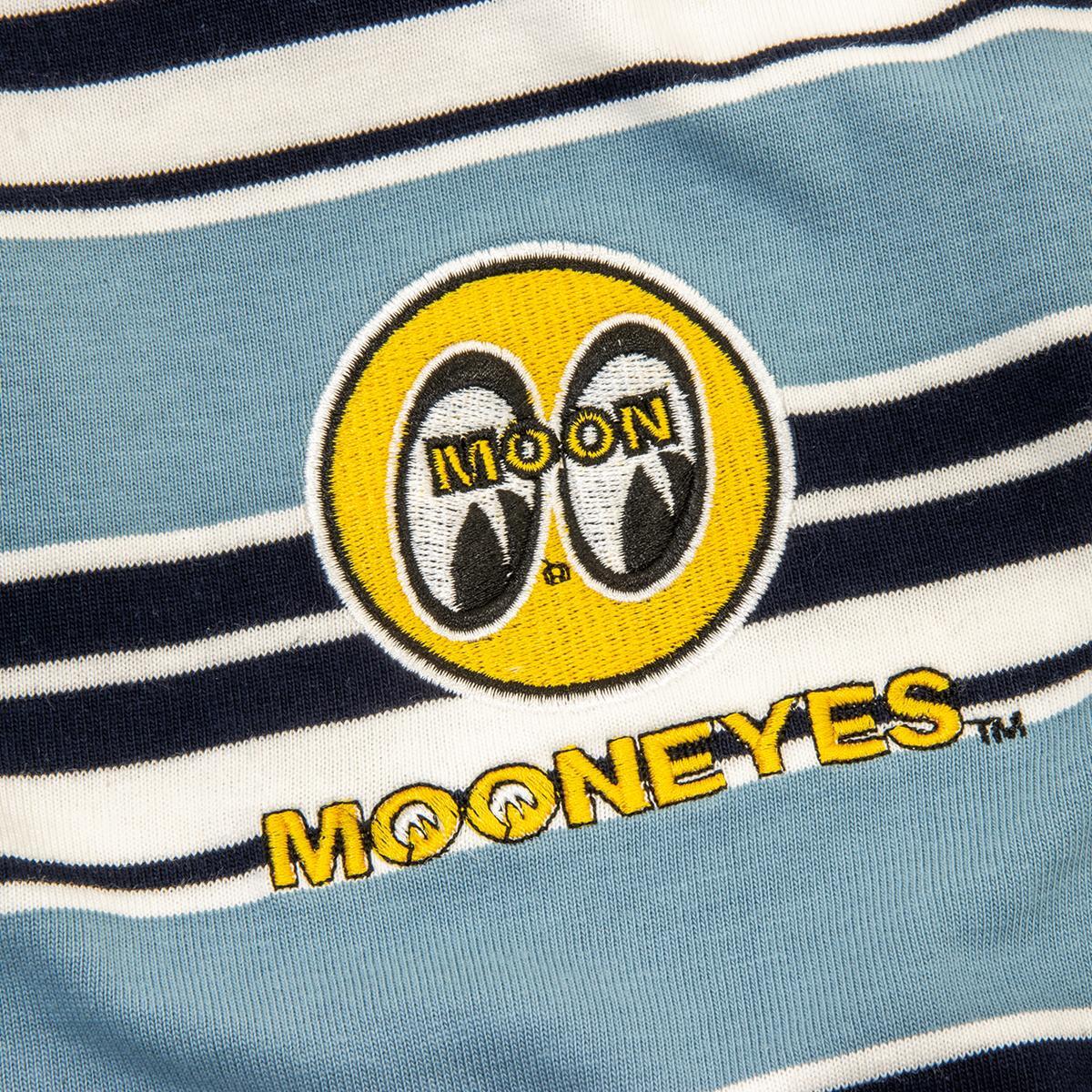 どこかノスタルジーを感じさせるマルチストライプのボーダーに、アイコニックな MOON アイボール ロゴをエンブロイダリー(刺繍)で施したTシャツ。