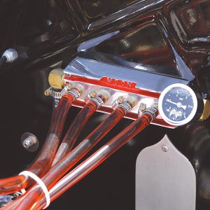 Dean Moon(ディーン・ムーン)が1950年代、Moon Cafe Back Yardで製作した最初のProductsと言われるMOON Fuel Block。40年以上のHistoryある一品です。本来はMulti CarbsにGasを均等に送るための物ですが、ペーパー ウェイトとしてなど、アナタの机に一つ、歴史の重みを感じて下さい。